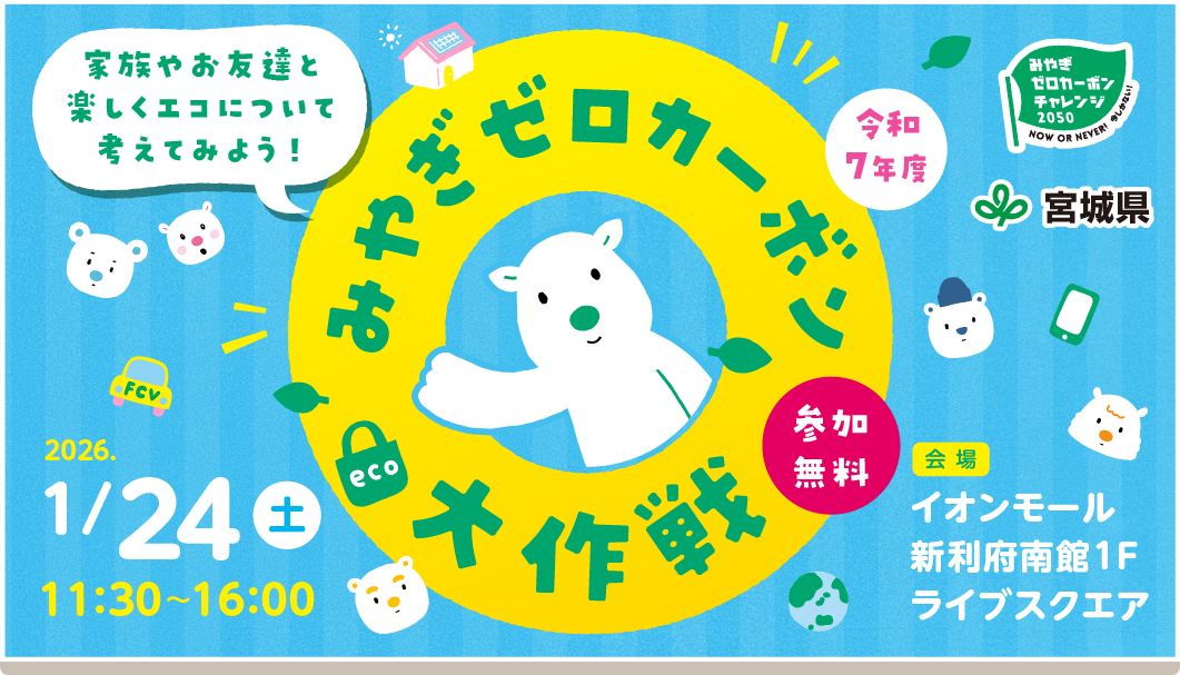 県では、2023年11月に「みやぎゼロカーボンチャレンジ2050県民会議」を設立し、脱炭素社会の実現に向けて一緒にチャレンジいただける会員を募集しています。